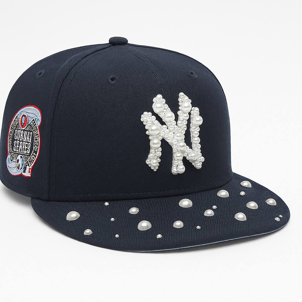 Custom NY Green & Cream Jeweled Fitted cap-59 Fifty